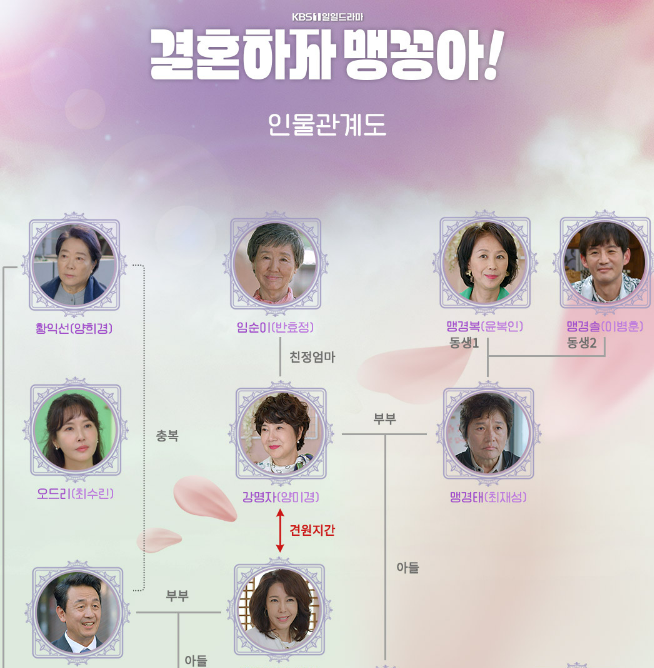 - 맹경태 (이은형): 강명자의 남편으로, 의사입니다. 그는 가족을 사랑하지만, 때때로 충동적인 행동으로 갈등을 일으킵니다.
