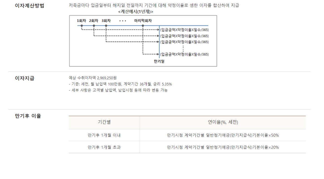 | 가입금액 및 저축방식 | 월 1만원 이상 ~ 100만원 이하 (자유적립식) |